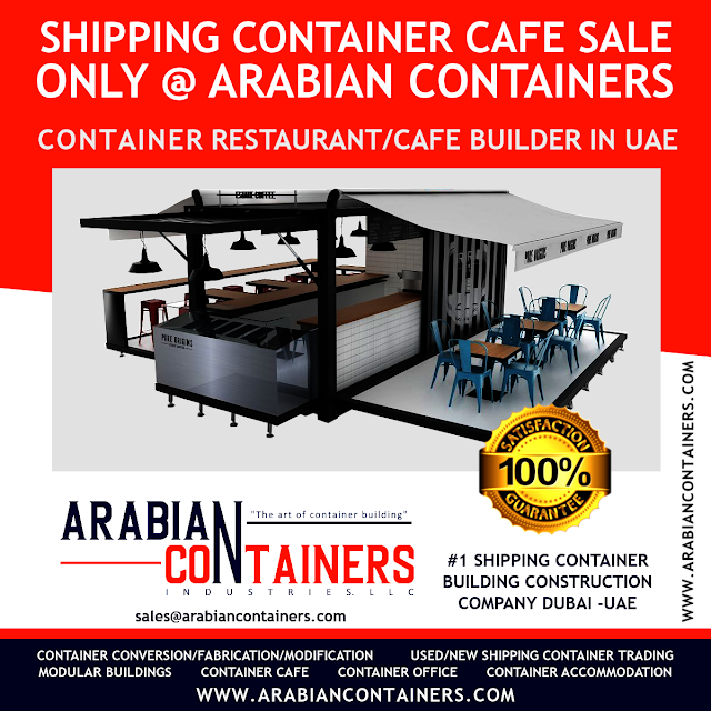 Shipping container cafes are the latest trend in cafe industry in UAE. Cafes made with shipping container units attracts more customers to the cafe business in UAE. Building for setting up cafe is the first major issue faced by cafe entrepreneurs in UAE. Shipping container cafe units solves this issue and shipping container cafe fits in all types of spaces. Shipping container cafes have to design according to the utility of particular cafe brand. And it will boost the cafe working and saves lots of working time. Arabian containers are the pioneers in building shipping container cafes in UAE and Arabian containers installs shipping container cafes in any location in UAE with quality installation process.
